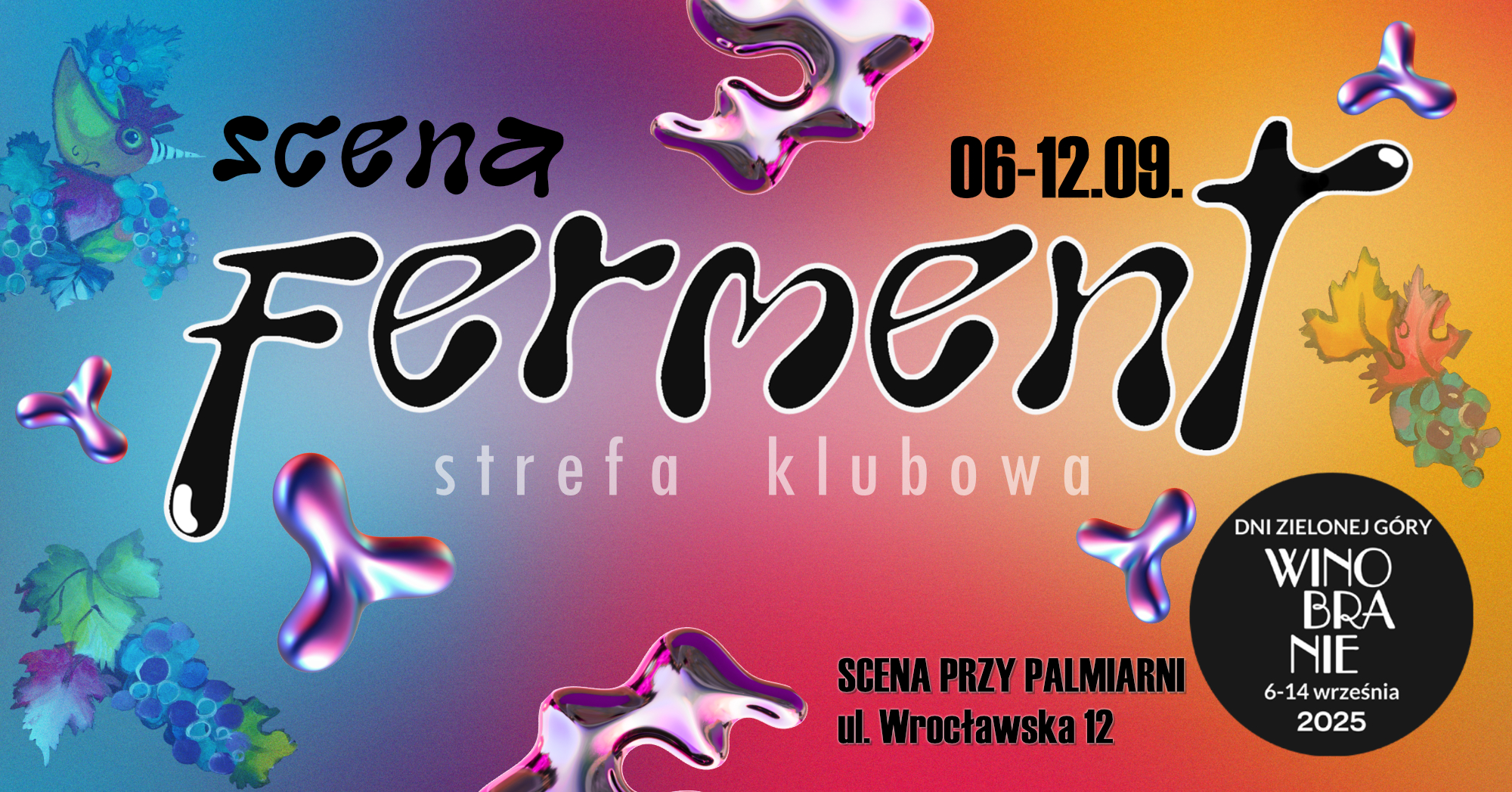 Podczas Winobrania 2025 wzgórze z zielonogórską Palmiarnią stanie się miejscem wyjątkowych muzycznych spotkań. Każdego dnia na klubowej scenie FERMENT zaprezentują się lokalni i lubuscy twórcy związani z różnymi nurtami muzyki elektronicznej i hip hopem. Winne Wzgórze stanie się przestrzenią dźwiękowych podróży – od relaksującego house’u i dubowe głębie, przez energiczny drum&bass, wyrazisty hip hop, po pulsujące techno i porywające trance’y.